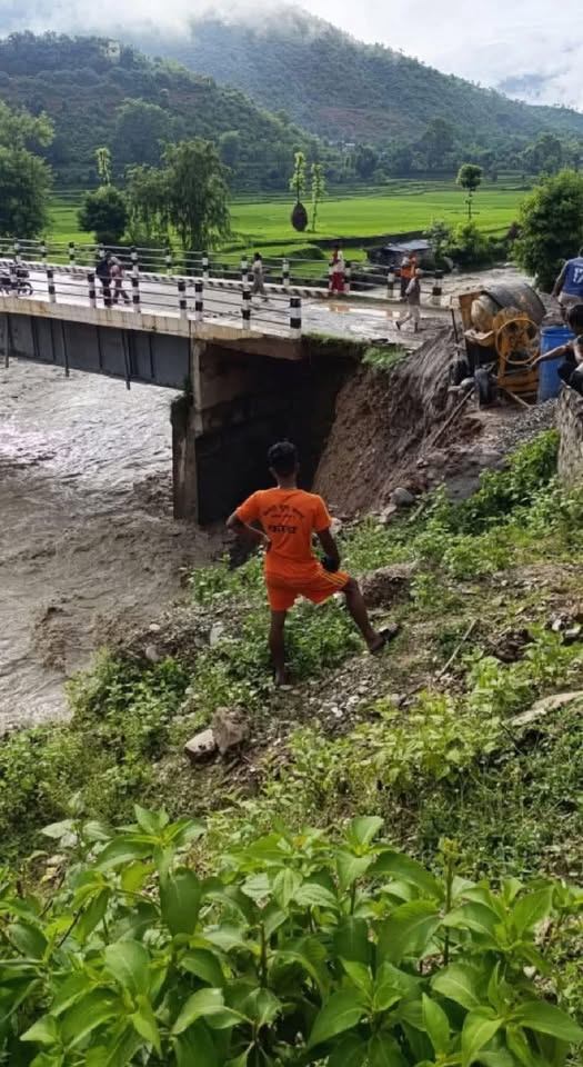 रामेछाप । रामेछापको भटौली खोलामा आएको बाढीले कटान गर्दा मन्थली बाट पकरवास तर्फ जाने सडक खण्डमा पर्ने भटौली खोलाको पुल जोखिममा परेक..
