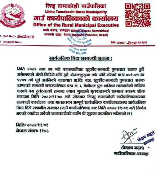 बस दुर्घटनामा मृत्यू भएकाको शोक मनाउन रामेछापको लिखु ता..