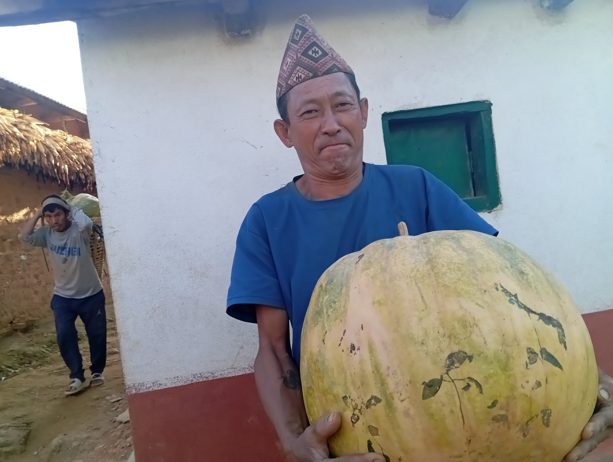 रामेछाप । रामेछाप नगरपालिका ५ रामपुरका किसान कालु तामाङको बारीमा ४० केजि तौलको फर्सी फलेको छ । ‘अरुको बारीमा पनि ठुलै फल्छन् तर यत..