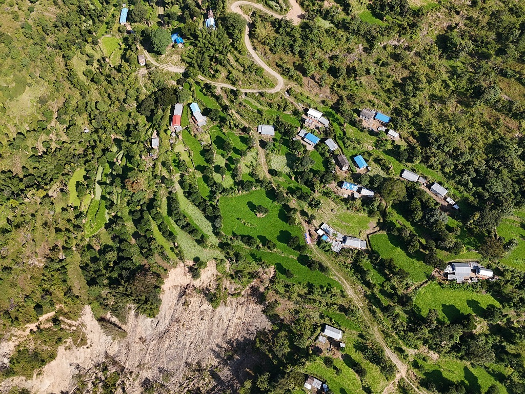 रामेछाप । गाउँमा पहिरो चल्यो, यो बर्षको तिहार त्यति राम्रो छैन् । जमिन फाँटिदो र सर्दो छ, त्यहि जमिन माथि चर्किएर लड्न ठिक्क परेको घर ..